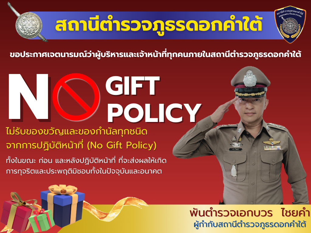 018ดอกคำใต้ 68 Engประกาศเจตนารมณ์ที่จะไม่รับของขวัญหรือของกำนัลทุกชนิดจากการปฏิบัติหน้าที่ (No Gift Policy)