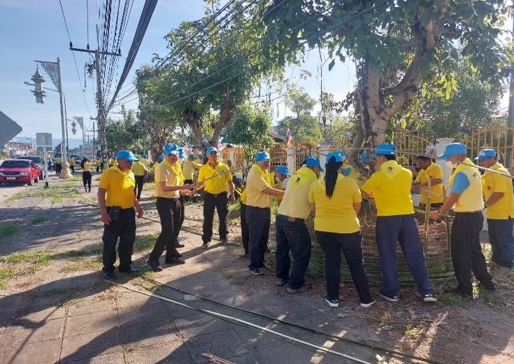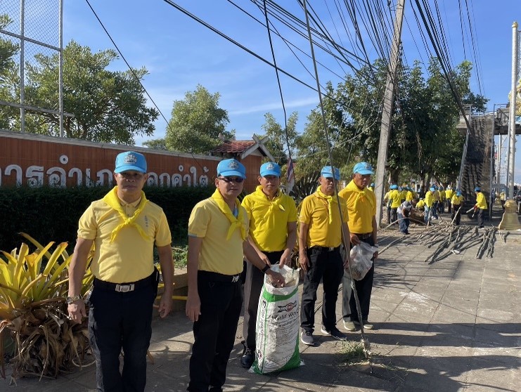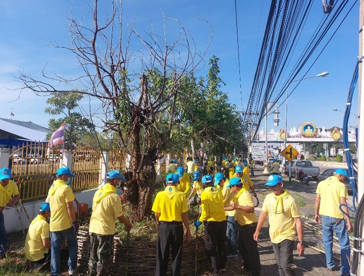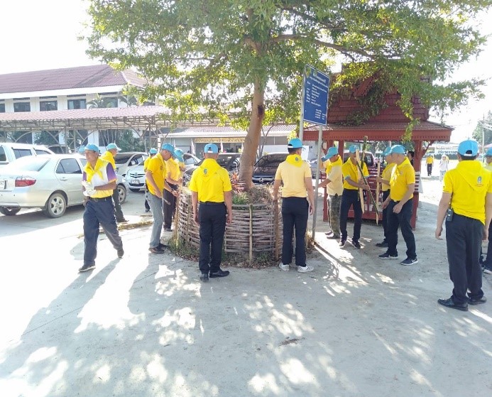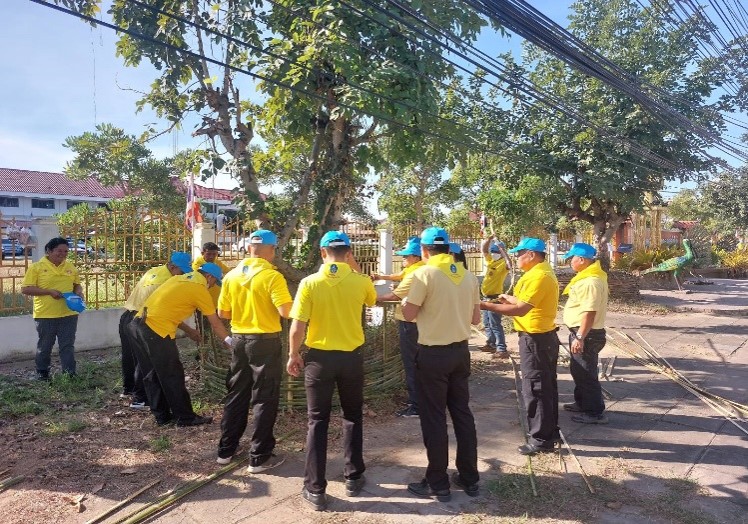 กิจกรรมจิตอาสาพัฒนาสาธารณะประโยน์ สร้างเสวียนไว้เก็บเศษใบไม้ กิ่งไม้ ไว้ ณ บริเวณรอบรั้วที่ว่าการอำเภอดอกคำใต้