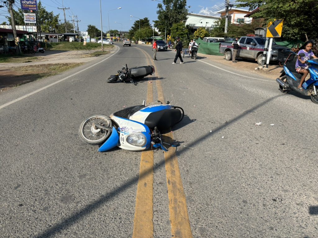 วันนี้(17 พ.ย. 68) เวลาประมาณ 15.00 น. ร.ต.อ.องอาจ หาที รอง สว.(สอบสวน) สภ.ดอกคำใต้ ได้รับแจ้งเหตุรถจักรยานยนต์เฉี่ยวชนกัน มีผู้ได้รับบาดเจ็บที่บริเวณแยกทางเข้าวัดพระธาตุจอมศีล ถนนดอกคำใต้ – เชียงม่วน หมู่ 1 ต.บ้านถ้ำ อ.ดอกคำใต้ จ.พะเยา จึงเดินทางไปตรวจที่เกิดเหตุ ถ่ายภาพที่เกิดเหตุ บันทึกการตรวจที่เกิดเหตุ ทำแผนที่สังเขปเอาไว้ นำรถทั้งสองคันมาเก็บไว้ที่ สภ. ลงบันทึกประจำวันรับคำร้องทุกข์ไว้ จะได้ทำการสอบสวนต่อไป