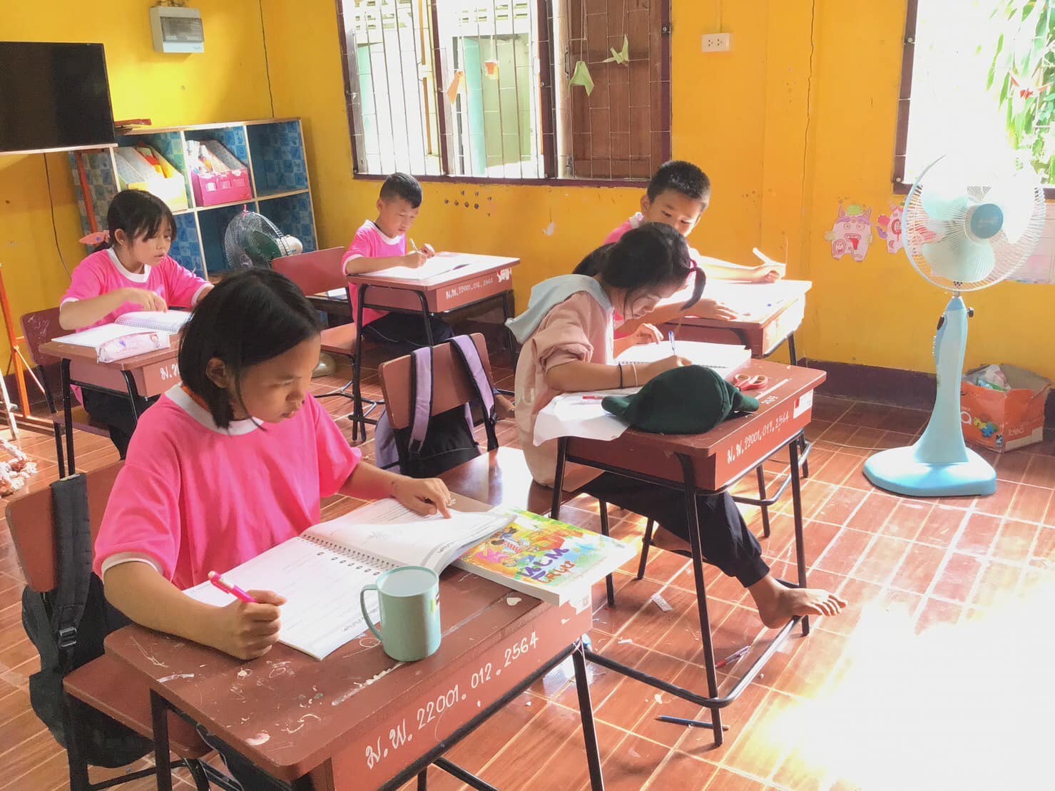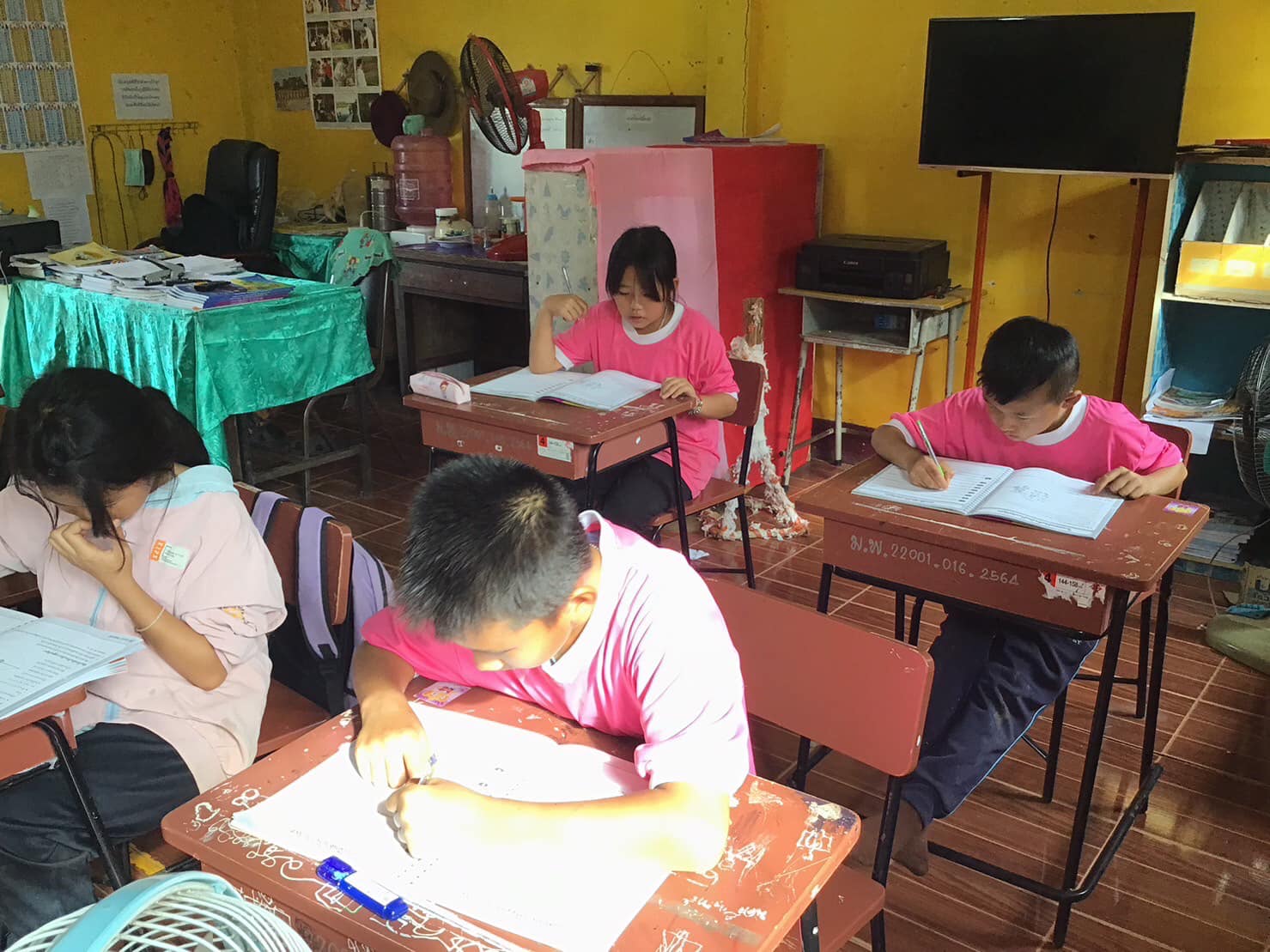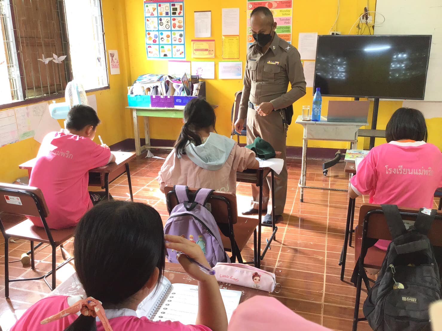 ด.ต.ศุภชัย ป้องเคน ครูตำรวจแดร์ ทำการสอนเด็กนักเรียน ชั้น ป.๕ ตามโครงการการศึกษาเพื่อต่อต้านการใช้ยาเสพติดในเด็กนักเรียน โรงเรียนบ้านแม่พริก ต.หนองหล่ม อ.ดอกคำใต้ จว.พะเยา เพื่อเป็นศิริมงคลกับชีวิต ให้ห่างไกลจากยาเสพติด