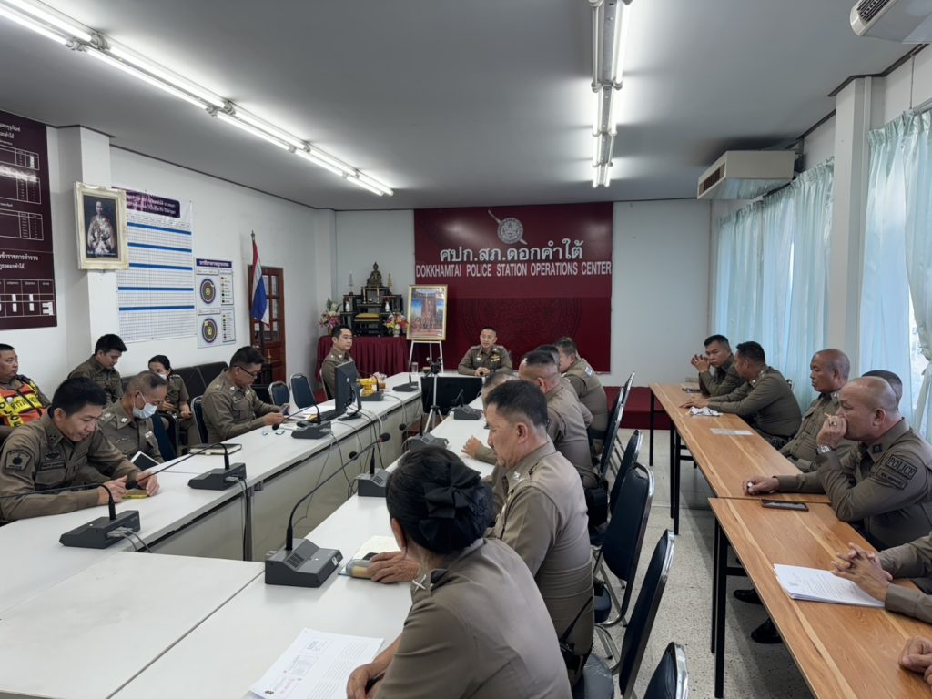 วันที่ 23 ธันวาคม 2567 เวลา 09.00 น. พ.ต.อ. บวร ไชยคำ ผกก.สภ.ดอกคำใต้ พร้อมข้าราชการตำรวจในสังกัด ร่วมประชุมประจำเดือน ธันวาคม พ.ศ.2567 เพื่อมอบนโยบายการปฏิบัติงาน ให้แก่ข้าราชการตำรวจ สภ.ดอกคำใต้ ณ ห้องประชุมสถานีตำรวจภูธรดอกคำใต้ อ.ดอกคำใต้ จว.พะเยา