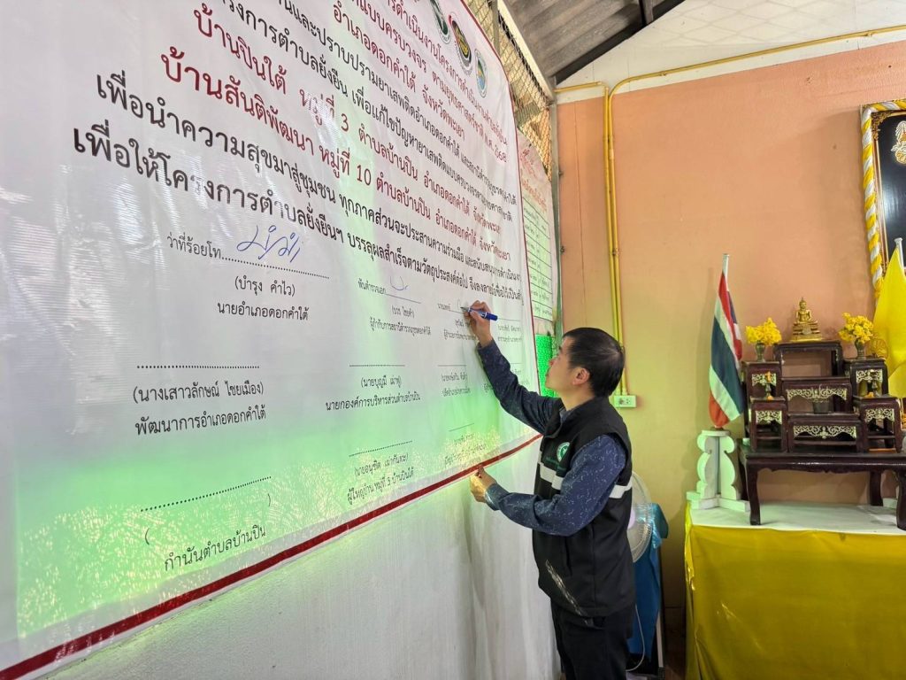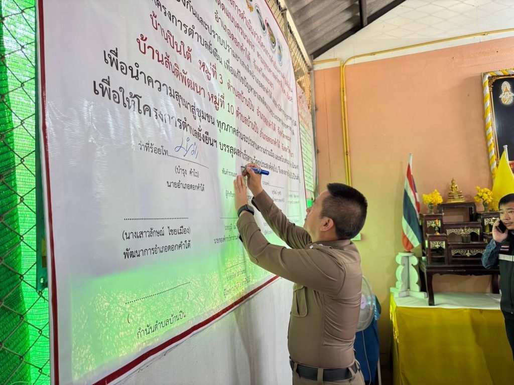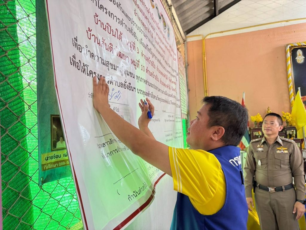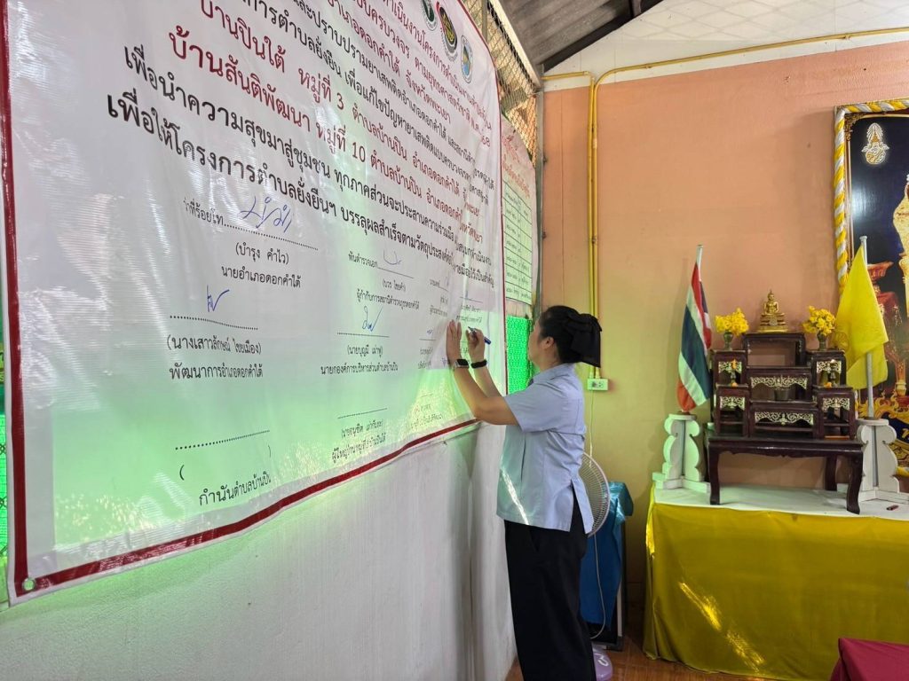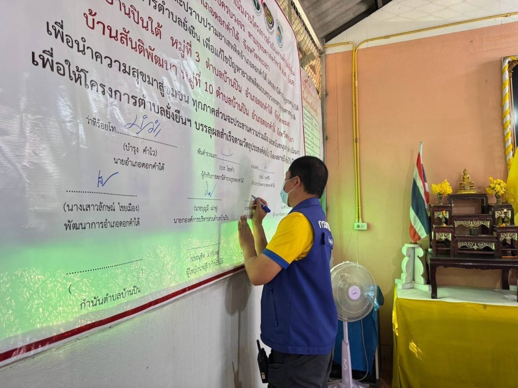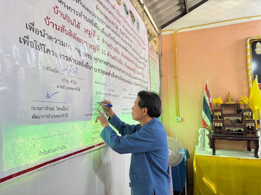 พร้อมกับภาคีเครือข่าย/ผู้นำชุมชน ตำบลบ้านปิน ร่วมพิธิเปิดโครงการดำเนินงานตำบลยั่งยืน เพื่อแก้ไขปัญหายาเสพติดแบบครบวงจรตามยุทธศาสตร์ พ.ศ. 2568 พร้อมด้วยภาคีเครือข่ายร่วมลงนามในบันทึก MOU. โครงการดำเนินงานตำบลยั่งยืน ประกอบด้วย