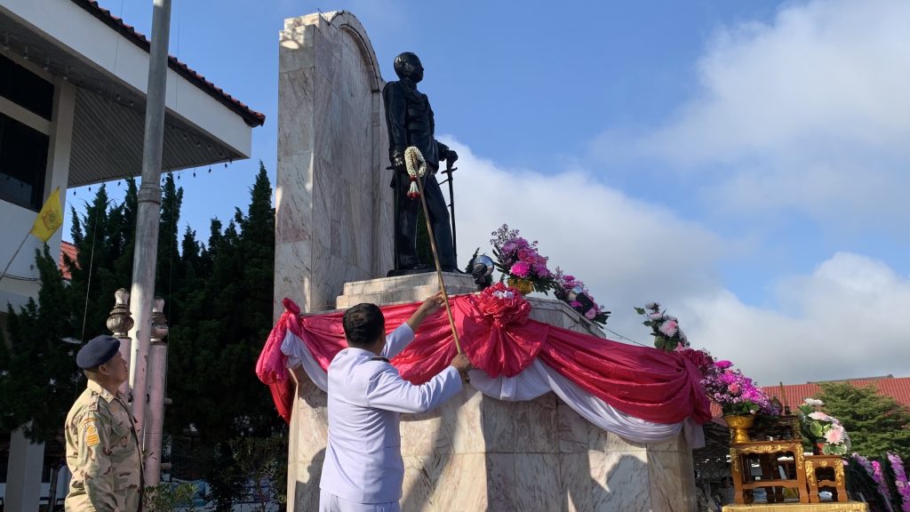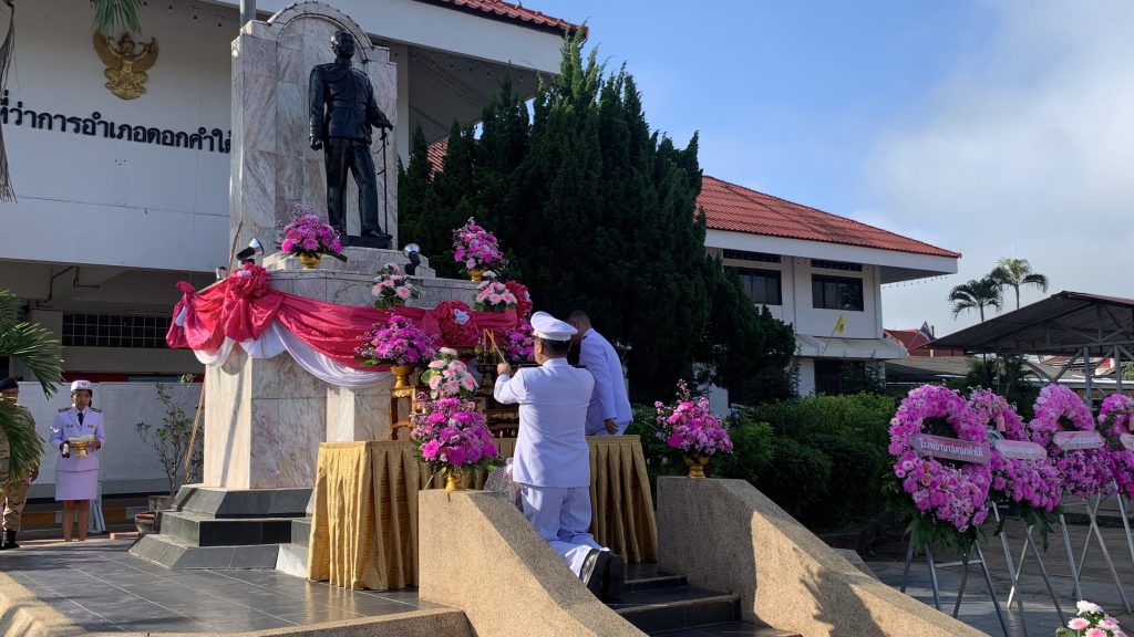 วันที่ 23 ตุลาคม พ.ศ.2567 เวลา 07.30 น. พ.ต.อ.บวร ไชยคำ ผกก.สภ.ดอกคำใต้ พร้อมข้าราชการการตำรวจในสังกัด ร่วมพิธีวางพวงมาลา เนื่องในวันคล้ายสวรรคตพระบาทสมเด็จพระจุลจอมเกล้าเจ้าอยู่หัว (วันปิยมหาราช) ณ หอประชุมที่ว่าอำเภอดอกคำใต้ อ.ดอกคำใต้ จว.พะเยา
