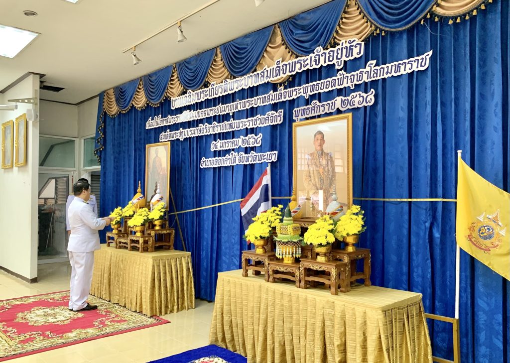 วันที่ 14 มกราคม พ.ศ.2568 เวลา 07.30 น. พ.ต.อ.บวร ไชยคำ ผกก.สภ.ดอกคำใต้ , คณะ กต.ตร. สภ.ดอกคำใต้,คณะที่ปรึกษา กต.ตร. สภ.ดอกคำใต้ พร้อมข้าราชการตำรวจ สภ.ดอกคำใต้ ร่วมการจัดกิจกรรมเฉลิมพระเกียรติพระบาทสมเด็จพระเจ้าอยู่หัว เนื่องในโอกาสพระราชพิธีสมงคลพระชนมายุเท่าพระบาทสมเด็จพระพุทธยอดฟ้าจุฬาโลกมหาราช สมเด็จพระปฐมบรมกษัตริยาธิราช แห่งพระราชวงศ์จักรี พุทธศักราช 2568 โดยมี ว่าที่ร้อยโทบำรุง คำไว นายอำเภอดอกคำใต้ ประธานในพิธี