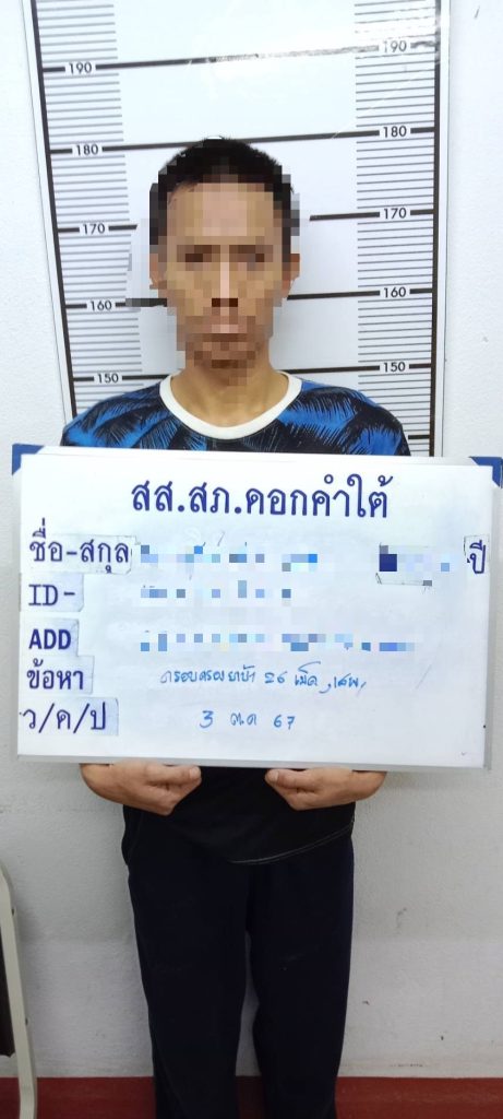 เมื่อวันที่ 3 ต.ค. 2567 ได้มีการจับกุมตัวผู้ต้องหา “มียาเสพติดให้โทษประเภท 1 (เมทแอมเฟตามีน) ไว้ในครอบครองโดยผิดกฎหมาย , เสพยาเสพติดให้โทษประเภท 1 (เมทแอมเฟตามีน) โดยผิดกฎหมาย ” จำนวน 1 ราย 1 คน ก่อนเกิดเหตุ ด้วยเจ้าหน้าที่ตำรวจชุดจับกุมได้ร่วมกันทำ การจับกุมตัว นายจักรกริช หรือแนท แก้วเทพ อายุ 30 ปี อยู่บ้านเลขที่ 158 หมู่ 4 ต.ป่าซาง อ.ดอกคำใต้ จว.พะเยา โดยกล่าวหาว่า “ มียาเสพติดให้โทษประเภท 1 (เมทแอมเฟตามีน) ไว้ในครอบครองโดยผิดกฎหมาย , เสพยาเสพติดให้โทษประเภท 1 (เมทแอมเฟตามีน) โดยผิดกฎหมาย , เป็นผู้ขับขี่รถเสพยาเสพติดให้โทษประเภท 1 (เมทแอมเฟตามีน) โดยผิดกฎหมาย ” พร้อมของกลางยาบ้า จำนวน 13 เม็ด จากการสอบถามและขยายผล นายจักรกริชฯ ให้การว่าตนซื้อยาบ้ามาจาก นายอรรถสิทธิ์ หรือบาส สิงห์เปาว์ อายุ 32 ปี อยู่บ้านเลขที่ 46 หมู่ 9 ต.ห้วยลานอ.ดอกคำใต้ จว.พะเยา ซึ่งปัจจุบัน นายอรรถสิทธิ์ฯ กำลังพักอาศัยอยู่ที่บ้านเลขที่ 46 หมู่ 8 ต.ป่าซาง อ.ดอกคำใต้ จว.พะเยา จึงได้รายงานให้ผู้บังคับบัญชาทราบ