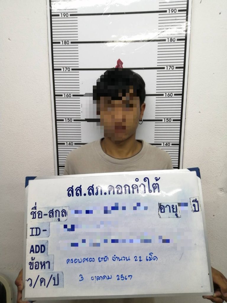เมื่อวันที่ 3 ต.ค. 2567 ได้มีการจับกุมตัวผู้ต้องหา “มียาเสพติดให้โทษประเภท 1 (เมทแอมเฟตามีน) ไว้ในครอบครองโดยผิดกฎหมาย ” จำนวน 1 ราย 1 คน ก่อนเกิดเหตุ ด้วยเจ้าหน้าที่ตำรวจชุดจับกุมได้ร่วมกัน ออกสืบสวนและหาข่าวในพื้นที่รับผิดชอบ เมื่อเดินทางมาถึงบริเวณถนนสาธารณะ หมู่ 5 ต.บ้านปิน อ.ดอกคำใต้ จว.พะเยา พบ นายศรายุทธ หรือปาล์ม ยารังสี ( ทราบชื่อภายหลัง ) อายุ 19 ปี อยู่บ้านเลขที่ 260 หมู่ 5 ต.บ้านปิน อ.ดอกคำใต้ จว.พะเยา กำลังยืนอยู่ริมถนนดังกล่าว ท่าทางมีพิรุธต้องสงสัย