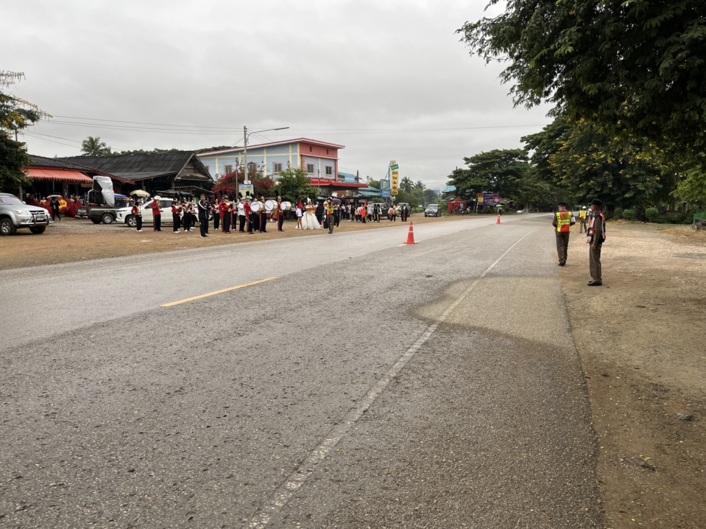 เจ้าหน้าที่ตำรวจจราจร สภ.ดอกคำใต้ พร้อมด้วยเจ้าหน้าที่ตำรวจสายตรวจตำบลห้วยลาน อำนวยความสะดวกและจัดการจราจรงานกีฬาสีโรงเรียนงำเมืองวิทยาคม