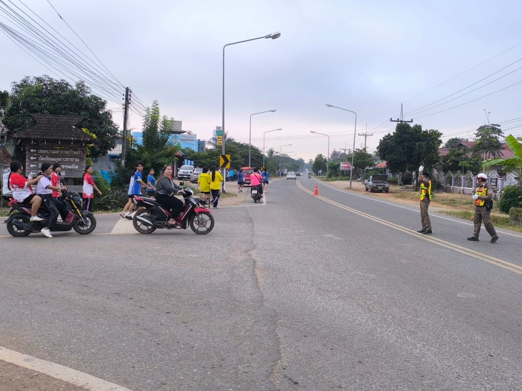 อำนวยความสะดวกและจัดการด้านการจราจรงานกิจกรรมวิ่งมินิมาราธอน โรงเรียนถ้ำปินวิทยาคม