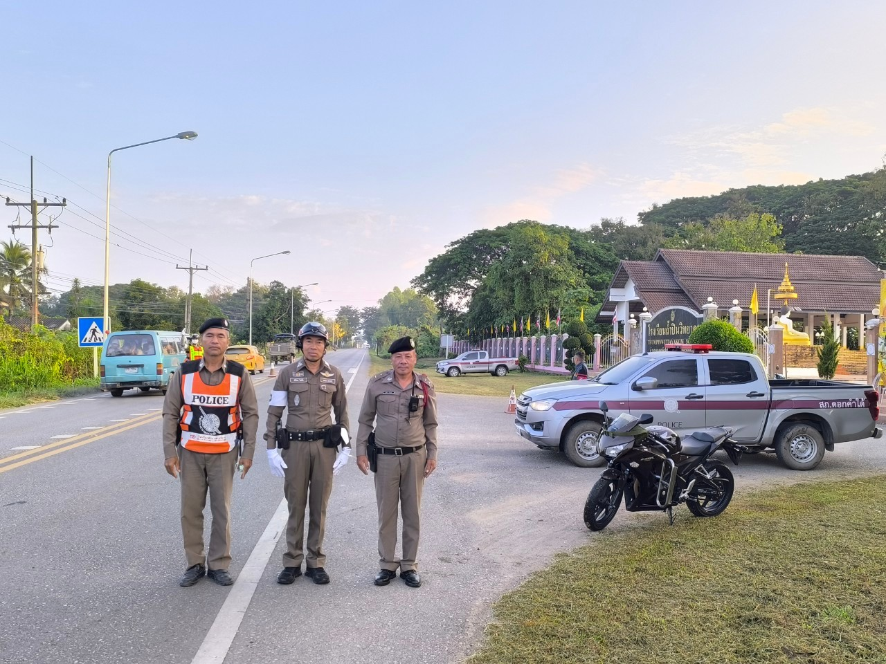 อำนวยความสะดวกและจัดการด้านการจราจรงานกิจกรรมวิ่งมินิมาราธอน โรงเรียนถ้ำปินวิทยาคม