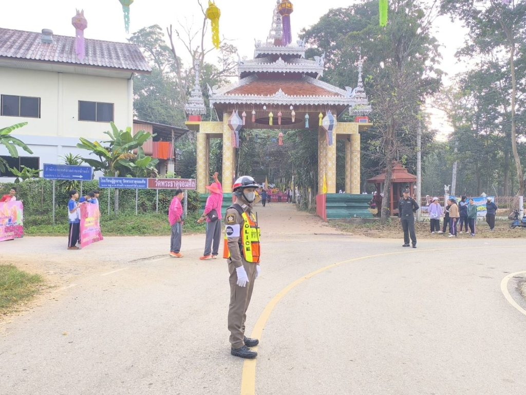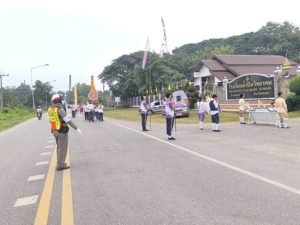 เจ้าหน้าที่ตำรวจจราจร สภ.ดอกคำใต้  อำนวยความสะดวกและจัดการด้านการจราจรขบวนพาเหรดนักกีฬาสี   โรงเรียนถ้ำปินวิทยาคม ต.บ้านถ้ำ อ.ดอกคำใต้ จว.พะเยา