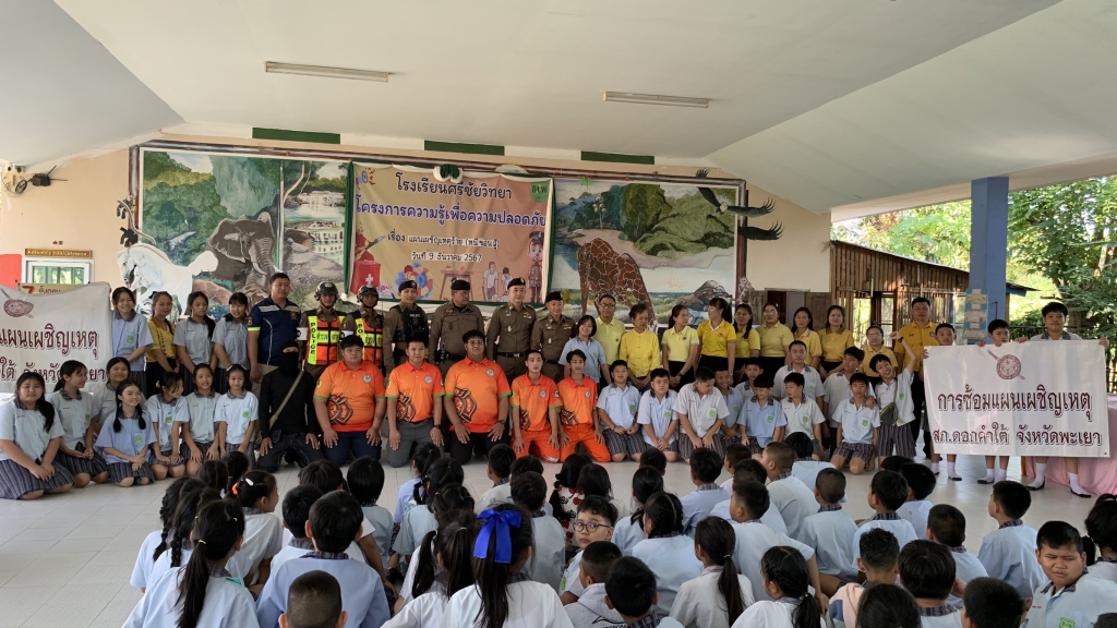เจ้าหน้าที่ตำรวจจราจร สภ.ดอกคำใต้ อำนวยความสะดวกและจัดการจราจรซ้อมแผนเผชิญเหตุประจำเดือน ธันวาคม 2567 ณ โรงเรียนอนุบาลศรีชัย ต.ดอกคำใต้ อ.ดอกคำใต้ จว.พะเยา