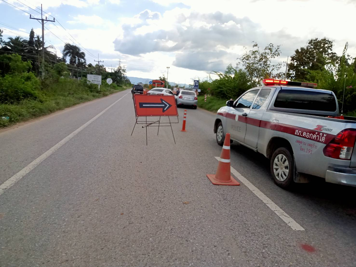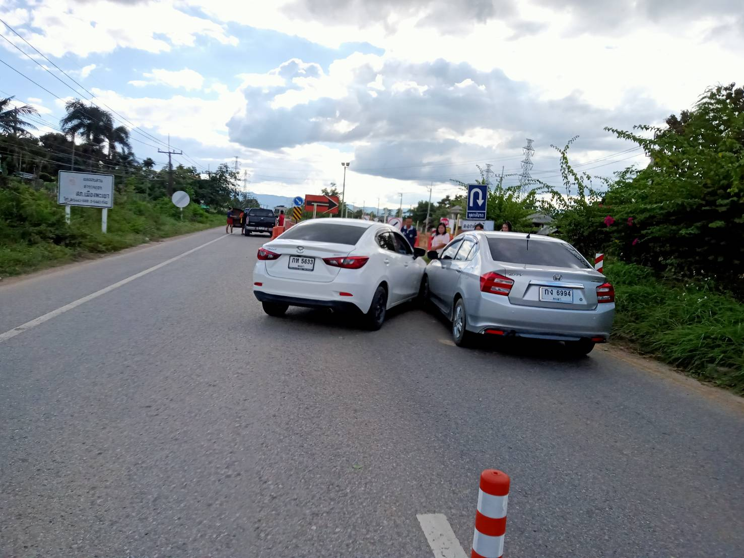 ด.ต.สด  บัวย้อย  เจ้าหน้าที่ตำรวจจราจร สภ.ดอกคำใต้  อำนวยความสะดวกและจัดการจราจร เหตุอุบัติเหตุรถยนต์เก๋งเฉี่ยวชนรถยนต์เก๋ง เหตุเกิดบนถนนสายพะเยา-เชียงคำ ม.6 ต.ดอกคำใต้ อ.ดอกคำใต้ฯ