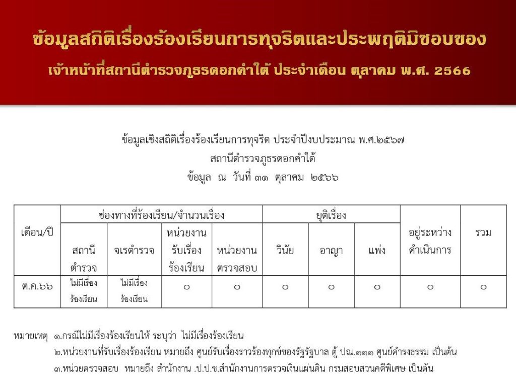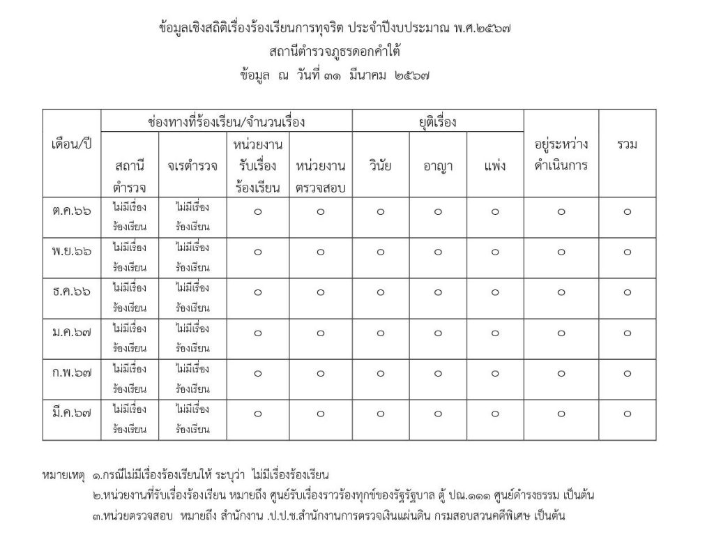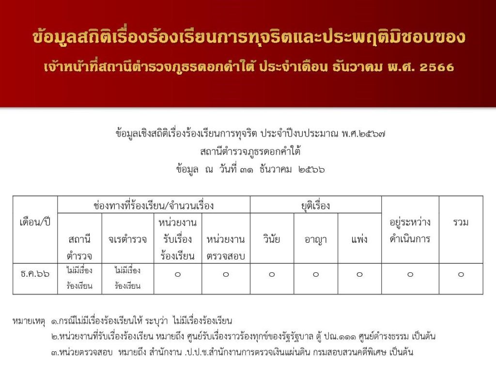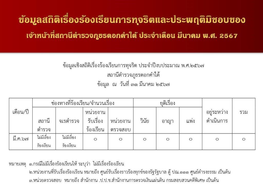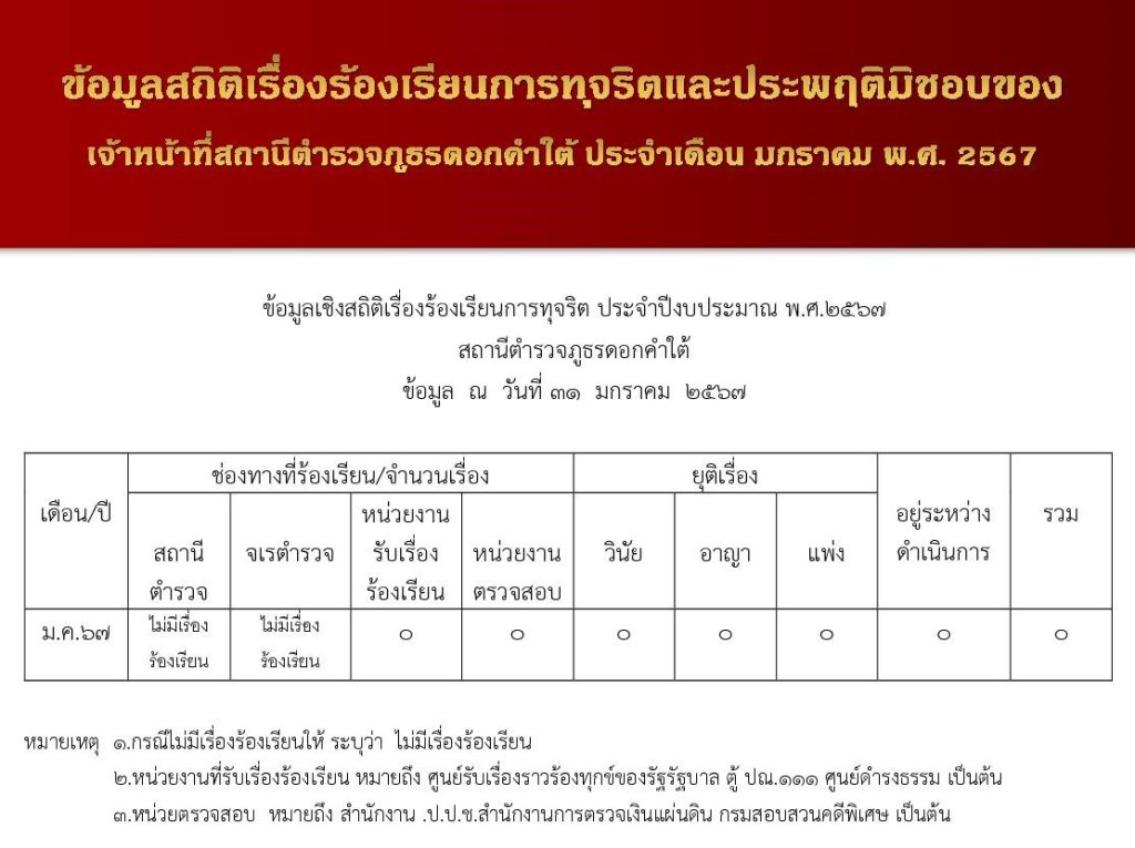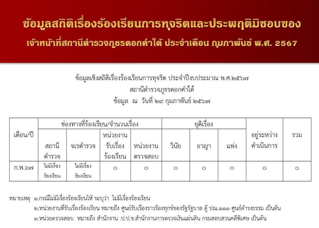 ข้อมูลสถิติเรื่องร้องเรียนการทุจริตและประพฤติมิชอบของเจ้าหน้าที่ของสถานีตำรวจภูธรดอกคำใต้